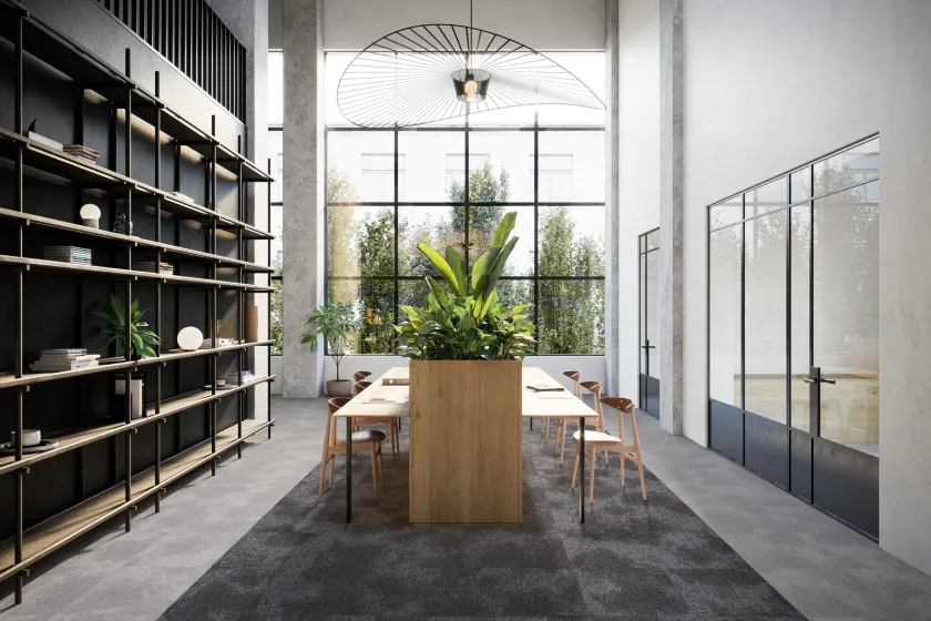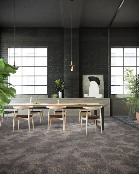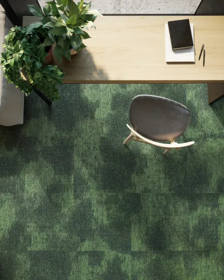 Le motif de DSGN Cloud est inspiré des formations nuageuses. Ce design organique de dalle de moquette présente une transition douce entre des tons plus clairs et plus foncés, est disponible dans des variations de couleurs vives et neutres et présente une texture à boucles.