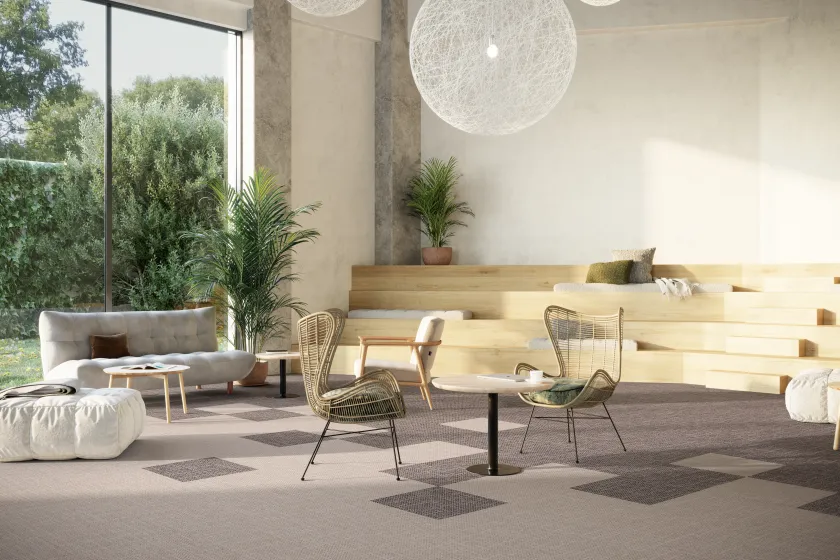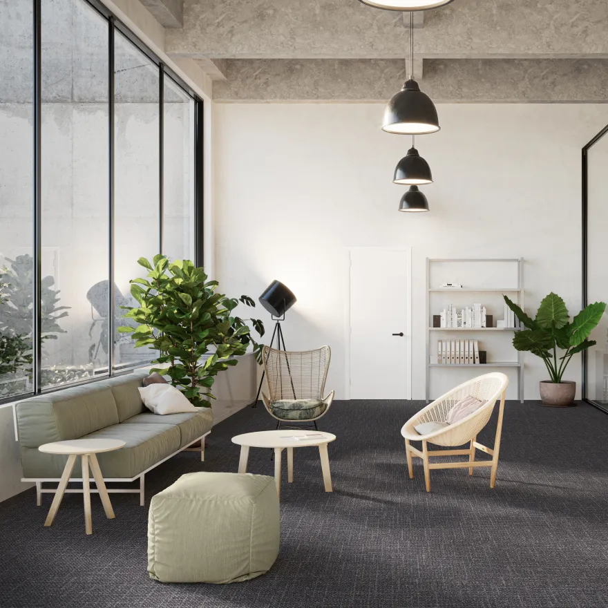 Le tissu emblématique en tweed sert d’inspiration à notre collection de dalles de moquette DSGN Tweed. Adapté à un contexte contemporain, ce motif texturé à boucles denses crée une sensation artisanale à la fois intemporelle et chic. Disponible dans des tons vifs et neutres, DSGN Tweed est le choix idéal pour votre espace commercial.