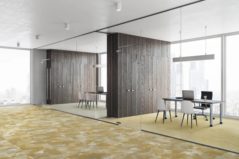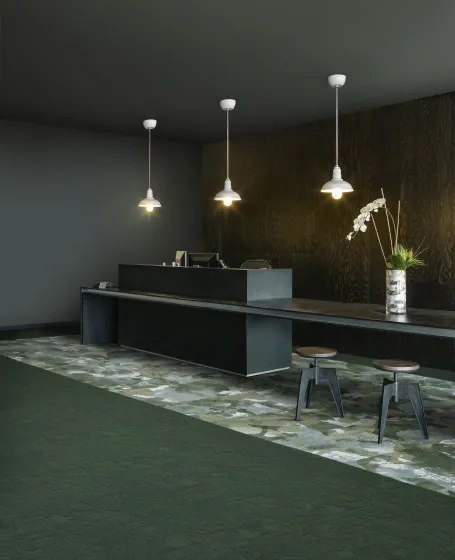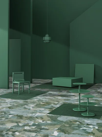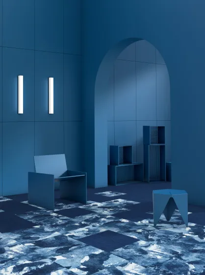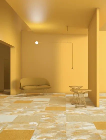Fluid& apporte une touche audacieuse de couleur à votre espace. Cette collection de dalles de moquette défie les normes conventionnelles en embrassant les imperfections dans ses motifs, ce qui contribue à son apparence unique et captivante. La collection est marquée par un sens remarquable de fluidité et de mouvement, renforcé par la texture cisaillée en pointe, les motifs étant comme dans un état de mouvement gracieux.