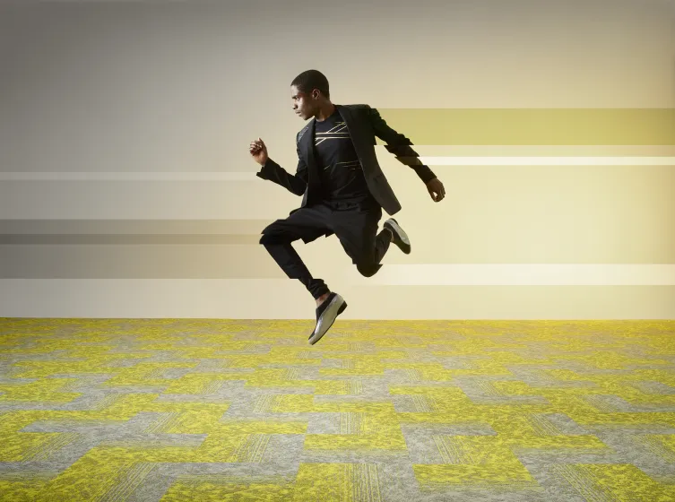 Changez le rythme de votre espace. La collection de dalles de moquette à boucles Motion se déplace avec fluidité ; les couleurs se fondent dans une texture dynamique et un motif changeant. Créez votre propre chorégraphie avec le dégradé de couleurs entraînant de Motion, disponible dans une palette de couleurs allant des verts punk et jaunes acides aux bleus pétrole et chromatiques. Adoptez Motion en solo ou mélangez-le avec les couleurs coordonnées de Vision.