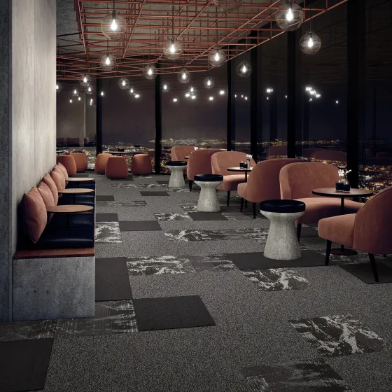 La collection Spark illumine les espaces avec un scintillement sophistiqué. Cette collection de dalles de moquette et de moquette en lé à boucles, disponible dans des couleurs chaudes et sombres, délivre un glaçage métallique qui se reflète et scintille subtilement dans votre intérieur.